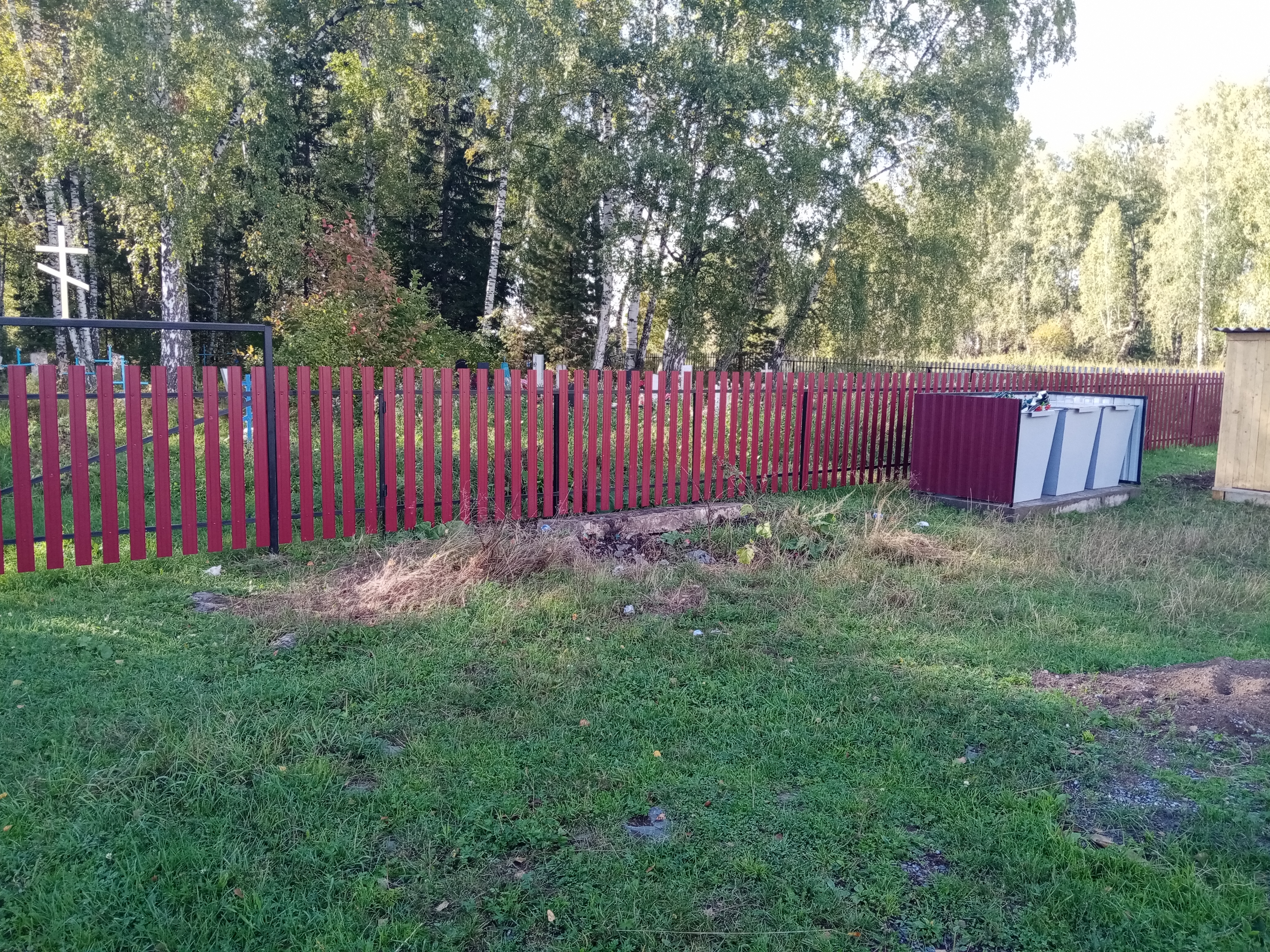Деревянное ограждение покосилось, пришло в негодность, в некоторых местах упало. Последний ремонт кладбища проводился в 2010 году, частично заменили штакетник, столбики, но спустя 9 лет, от ремонта не осталось и следа. На территорию кладбища беспрепятственно заходят животные, ломают оградки могилок, наносят материальный ущерб. Ежегодно в праздники на кладбище приезжает много людей и они видят, что места захоронения находятся в неудовлетворительном состоянии. Так же кладбище находится возле трассы и жители деревень, гости, каждый день проезжая мимо него, видят покосившейся забор, поломанный штакетник.